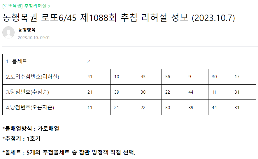 ∘ ⇢ 동행복권 공식 리허설 정보카페