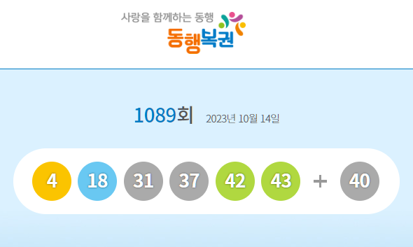 | ⌘ 동행복권(로또) 1089회 당첨번호 |